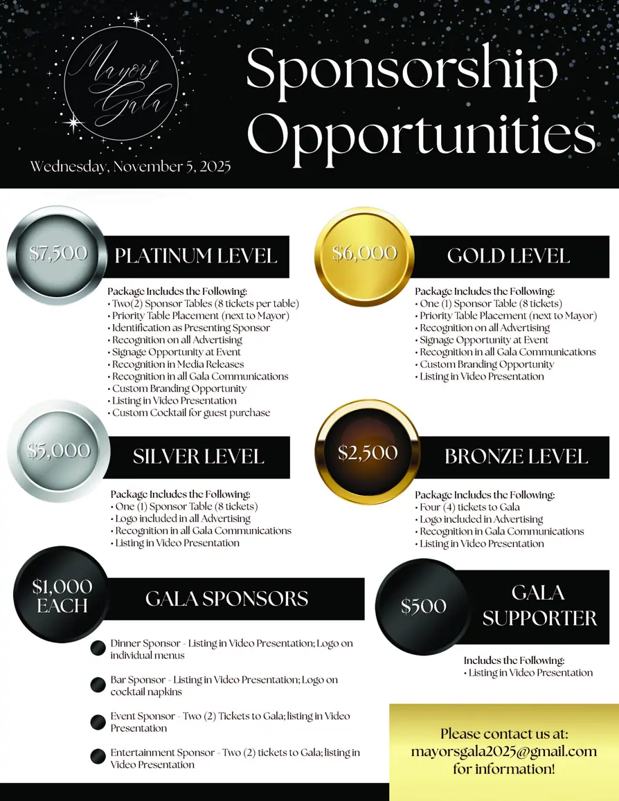 - Event Sponsor - two (2) tickets to Gala; listing in video presentation