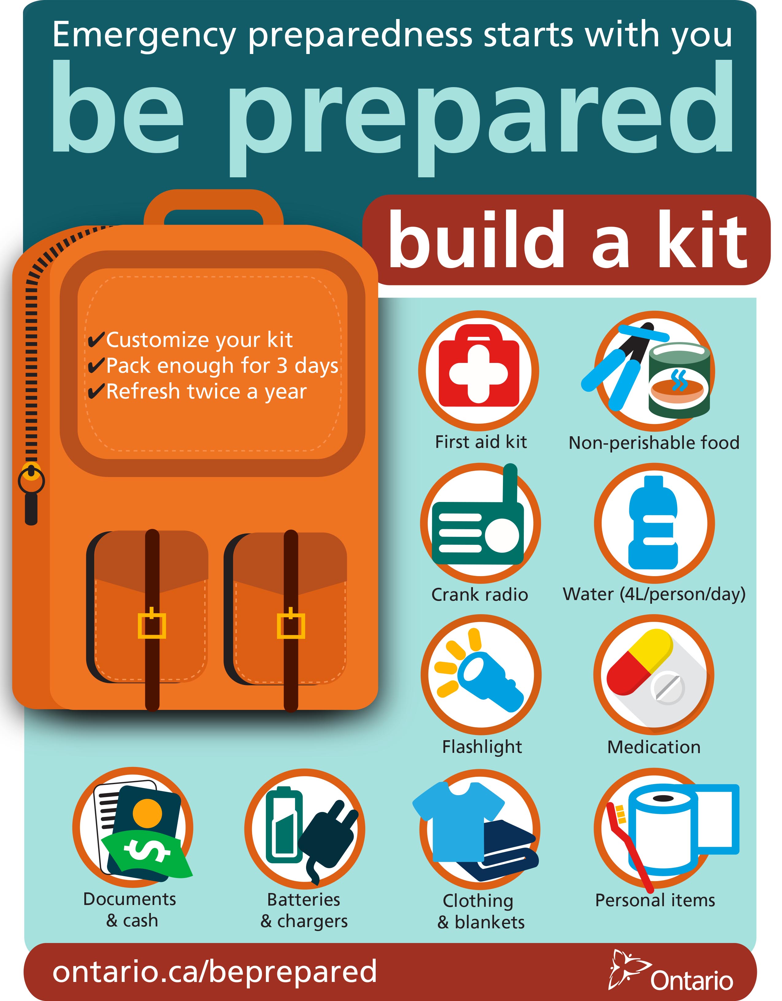 A basic survival kit should have enough food, water and other necessities to take care of yourself for 72 hours. Basic survival kit items include: Here's a shopping list that may be of help: