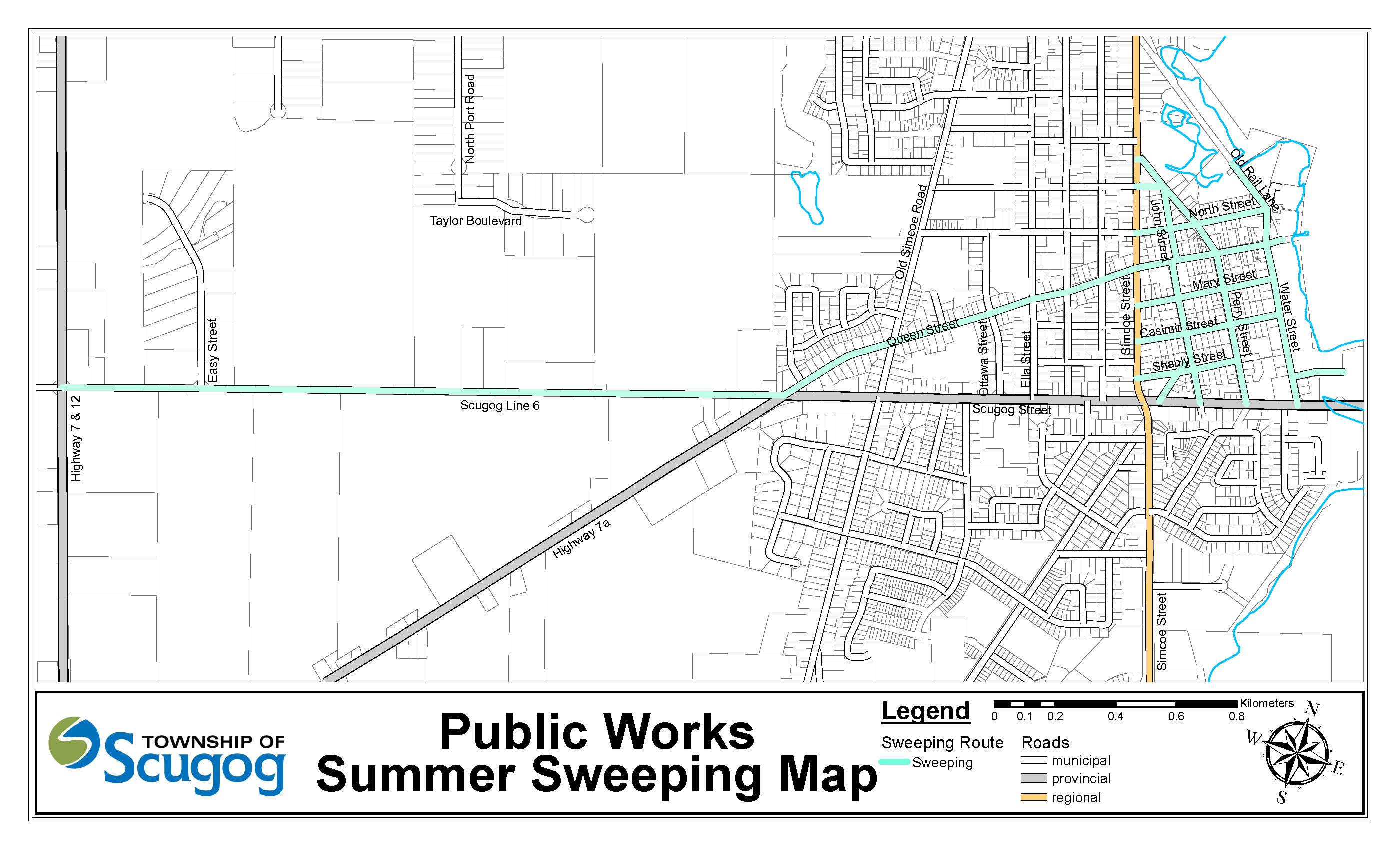 The Township of Scugog schedules mechanical sweeping and flushing of the Downtown Port Perry streets as well as spring clean-up in most other areas of the Township. Spring sweeping typically starts in late April.